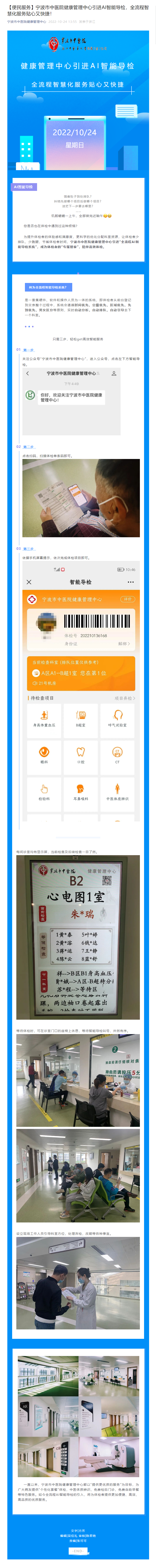 寧波市中醫(yī)院健康管理中心引進(jìn)調(diào)鼎AI智能導(dǎo)檢系統(tǒng),全流程智慧化服務(wù)貼心又快捷!