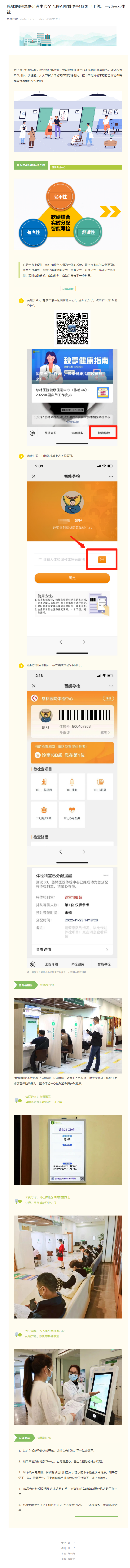 慈林醫(yī)院健康促進中心是慈溪市目前規(guī)模最大的健康促進中心。中心以全心全意、全人全程的健康管理理念為體檢客戶發(fā)現(xiàn)早期身體隱患,幫助體檢客戶早發(fā)現(xiàn)、早診斷、早治療。為了優(yōu)化體檢流程,增強客戶體驗感,健康促進中心上線了調(diào)鼎全流程AI智能導檢系統(tǒng),下面就讓我們一起來云體驗一下吧!