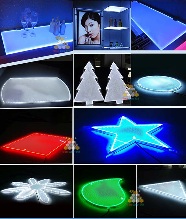導(dǎo)光板之所以在市場(chǎng)占有一定的主導(dǎo)位置,主要是由于導(dǎo)光板可以根據(jù)客戶要求任意裁切成所需的規(guī)格尺寸,也可以拼接使用,工藝簡(jiǎn)單、制作方便;戶內(nèi)戶外皆可適用,安全又環(huán)保,是所有廣告行業(yè)、展示、展柜、招牌、照明等最佳選擇。小小一塊導(dǎo)光板,超呼你的想象,它的用途制作展示不一樣的效果,各種優(yōu)美形狀散發(fā)的光芒色彩斑斕動(dòng)人,時(shí)尚奢華總是讓人眼前一亮。近期有很多客戶都向我們問(wèn)起哪種導(dǎo)光板的性價(jià)比最高的問(wèn)題。如果是從亮度方面來(lái)說(shuō),以下介紹的多種工藝制作都可以達(dá)到廣告主滿意的效果。
