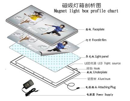 7.LGP of light box adopt to electronic ballast ,can easy make the electric induction. For your safety ,please pay attention to connect the ground。