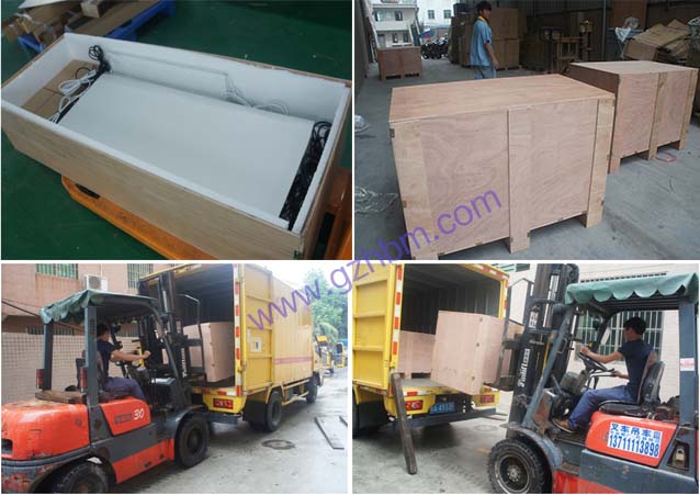 導光板在車間做好之后,為了防止導光板有什么損傷,在大箱子里面還墊上了厚厚的泡沫。可謂是用心良苦啊!所有的導光板都用木箱包裝好了,安全系數(shù)絕對可靠!就 今天還下著小雨,但是為了客戶能早一點拿到導光板。我們大家都盡心盡力將貨裝上車,總是皇天不負有心人,一切都搞定,看著裝好導光板的DHL或者慢慢離去,我們是任務也算是圓滿成功啦!