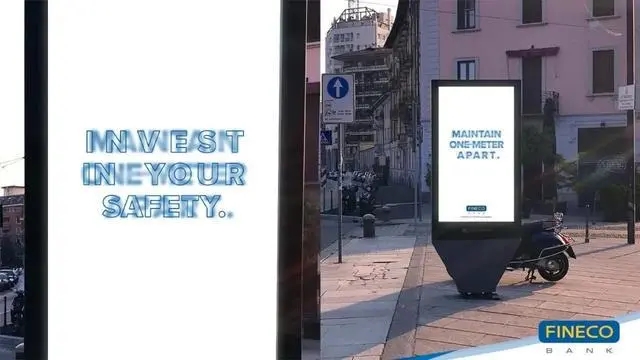 為了凸顯其投資的安全性,借助了疫情時期要保持一米的安全距離,然后設(shè)計了一個只有離廣告牌一米距離,才能看清廣告內(nèi)容的戶外廣告,從而傳達了—— 安全是現(xiàn)在有價值的投資。